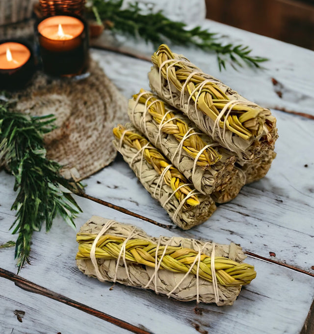 Sweet Grass & White Sage Smudge Stick for Strength of Family, Happiness & Energy Boosting