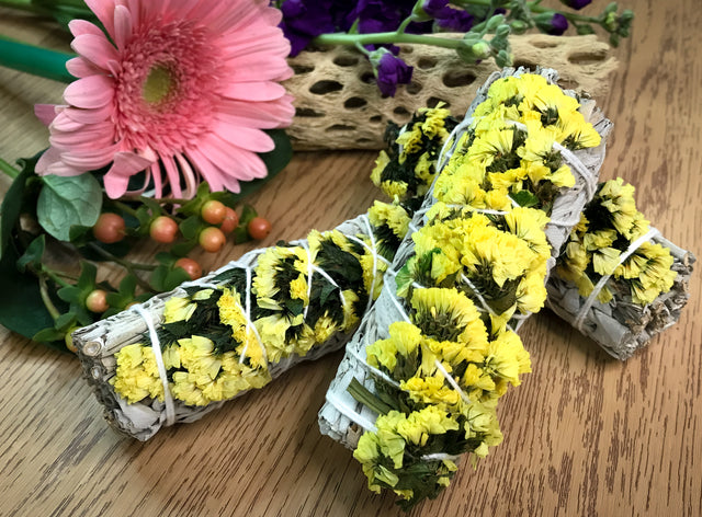 Yellow Sinuata Flower & White Sage Smudge Stick for Happiness, Optimism & Friendship