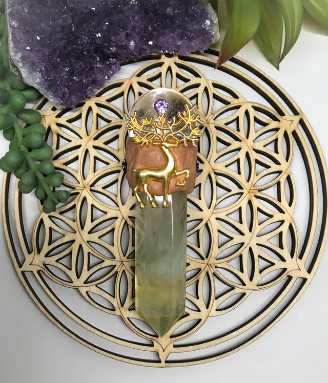 Fluorite and Crystal Quartz Wand for Mental Focus, Confidence & Healing
