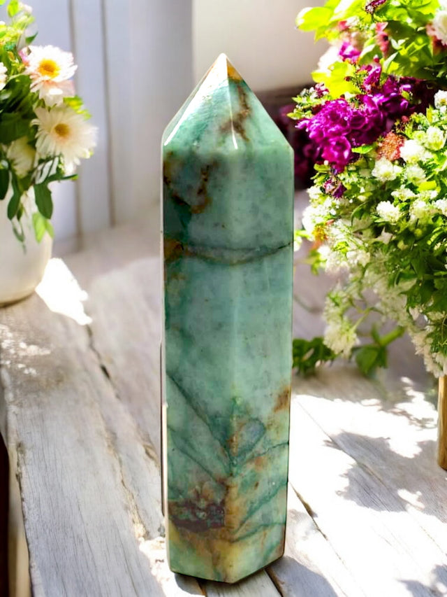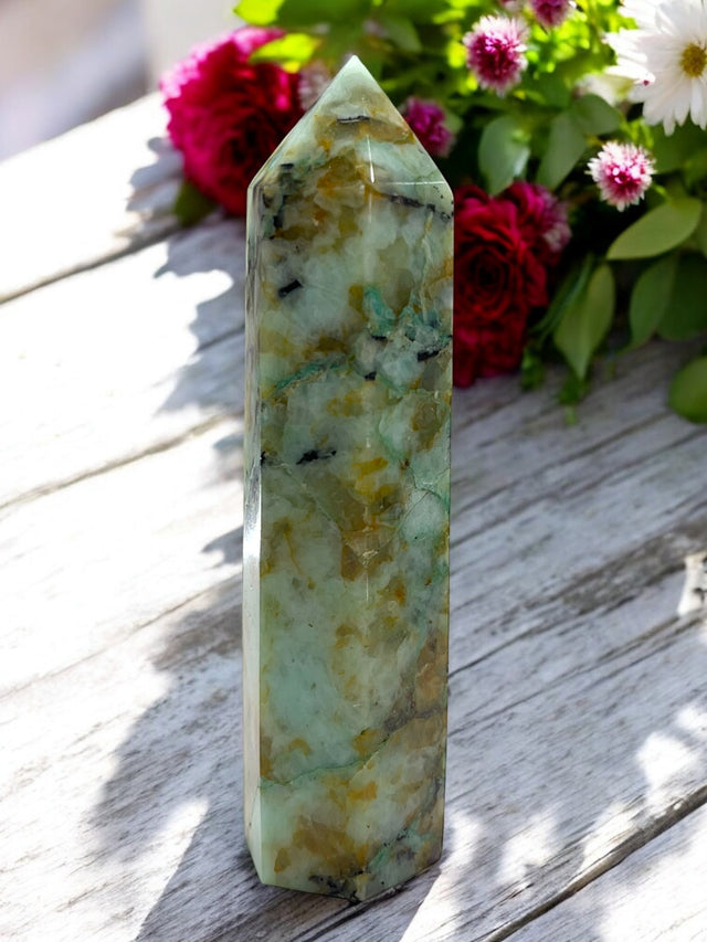 Green Flower Agate Crystal Point for Promoting Capability, Promise & Aptitude
