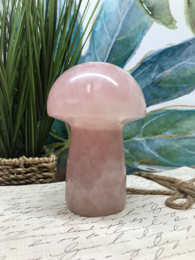 Rose Quartz Mushroom for Relationships, Self Confidence & Self Love